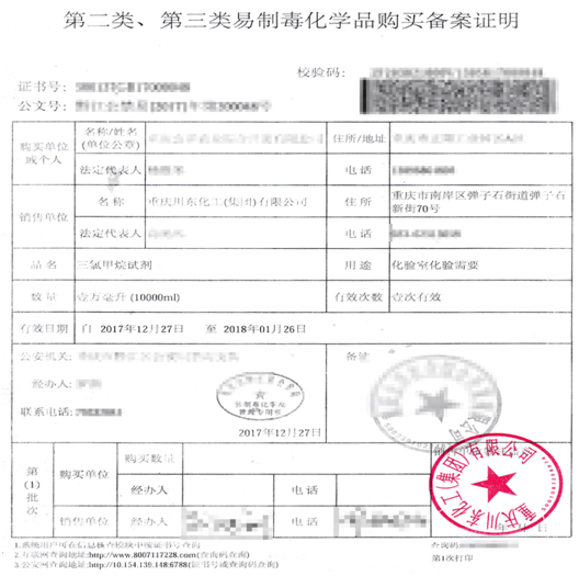 《易制毒化學品購買備案證明》由購買方到當地公安局或者網絡平臺自行辦理。所需銷售方提供的資料向銷售業務員索取。